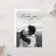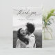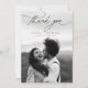 Tack för ditt kort med vårt Modern Photo Bröllop-tack för Eleganten Skript i. Det här kortet har ett handskrivet calligraphy-skript, parat med ett häpnadsväckande svart och vitt foto av de nya lywederna. Den enkla och minimalistiska utformningen utstrålar klassisk elegans, skapar perfekt för contemporary par. Den digitala övertäckningstypen gör att den här chicen och det tidslösa kortet får en modern beröring.