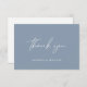 Ett enkelt och modernt Calligraphy-skript - Tack för att du skickar ut ett kort i mjuk, dammblå färg efter bröllop. Anpassa den med ditt eget namn på framsidan och på baksidan eller ta bort texten på baksidan och lägg till din handskrivna anteckning.