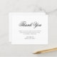 En enkel budgetsympati tack för att du fick ett kort för begravnings-/minnesservice med en minimalistisk design med "tack" i svart kalligrafi över en vit bakgrund. Använda mallen för att enkelt lägga till anpassningsbarna. En grundläggande och tydlig design som fortfarande visas som elegant.