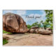 Tack för att du har ett kort med en stor granitboulder sten sitta ovanpå Saint Francois-bergen i Statsparken Elephant Sten. I nationalskogen Mark Twain i Ozarks i Järn Missouri är parken fylld med stora granitmassor. Tittar du fler utskrifter eller produkter? Besök gärna min butik: http://www.zazzle.com/timelessmomentsphtgy Det här fotot togs av Jennifer White med Timless Moments Photography. Alla bilder är upphovsrättsskyddade © Timless Moments Photography.