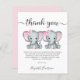 Tack för att du fick ett kort för din twin flicka-dusch med "tack" i ett snyggt mjukt grått-skript med dekorationer och rosa vattenfärger på två baby-elefanter. Anpassa enkelt ditt tackmeddelande med enkel grått-topografi eller lämna tomt för en handskriven anteckning.