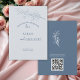 De här vykorten har rubrikat ert tacksamhetsbudskap tillsammans med minimalistisk blomma. Den ömtåliga folien parad med typografin gör utformningen sofistikerad och minnesvärd. Baksidan har en traditionell mall för post-stil och en användbar QR-kod för att länka till bilder från och med dagen. Anpassa den med dina egna detaljer.