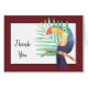 Detta är ett tackkort för roligten som är lämpligt för många tillfälle när ett tack behövs. Funktionen på framsidan är en färglös vattenfärgsbild av en skalbar fågel som går på gren. Färg i fågeln omfattar blått, guld, grönt och rosa. Bakom honom finns en grönt tropisk fern. Bilder är placerat på ett vitt fält intill mörkens måndag. Din anpassningsbar är i blått till lämnad. Låt det stå spelar ingen roll att du vill! Insidan lämnas tom för ditt eget meddelande.