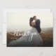 Ett underbart och tankeväckande sätt att tacka dina vänner, familj och medarbetare som hyllade dig med sin närvaro på din bröllopsdag med detta moderna minimalistiska fototack som du kortar med skript med handskrivet "tack" och ett kärlek-hjärta.