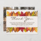 Ett fantastiskt tackkort som innehåller "Tack" och text på framsidan och ett foto av bruden och trippen på baksidan. Textdelen kan skrivas in för att skicka en anteckning till varje gäst eller tas bort till skrivan. Koordineras perfekt med Höst löv-samlingen.