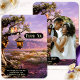 Tack för bröllop-kortet med en målning av ett lavendellandskap vid solnedgången med lantern och love birds. På baksidan är anpassningsbarnas foto
