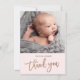 Det här moderna fotot-tackkortet har handskrivet skript i ro guld tack, baby namn och foto på framsidan. Baksidan innehåller ett tackmeddelande från hela familjen. Klicka på knappen Redigera om du vill anpassa designen med foton och detaljer.