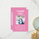 Lägg till foto från dina små flickor till den här rosa födelsedagsfesten tack vare ditt kort. Med vit text på en ljus rosa bakgrund. Ändra texten och fotot genom att klicka på knappen Anpassa.