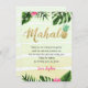 Tack för ditt kort med mahalo, tropisk design och gröntens bakgrund.