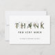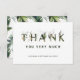 Tack så mycket i bröllop för att ni har ett kort med grönt av tropisk löv i brev och faux guld lämnar accents med en mönster i bananen i löv på baksidan. Perfekt för bröllop, födelsedagar, studenten och andra händelser. >>>> Checka ut hela samlingen >>> https://www.zazzle.com/collections/tropical_foliage_green_collection-119021829937676776