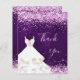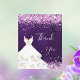Ett feminin- och elegant födelsedagstack. En lila, ojämn färgad färg. Med rosa faux glitter, gnistor och vit tork. På framsidan finns ett skript med stora bokstäver och texten: Tack. Tillbaka: Anpassa och lägg till tackkort och namn. Namn är skrivet med ett modernt handskript i stil.