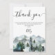 Wilderness Baby Shower Tack-kort Det här äventyr börjar eller vildmarkens tematiska babydusch tack vare att du har ett kort med en atmosfärisk vildmarkscen med gräs träd och berg. Underbar för en pojkes vinterbabydusch och ett sött sätt att tacka gästerna för att de kom till din vildmark... äventyr temade babydusch.