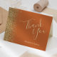 Den här eleganten är bröllop tack vare att du har ett kort från gräns i guld faux glitter på en brinnande orange. Med anpassadet kombineras ord "Tack" i handskriftsskriptet blek guld färgad och namnen för briden och trimmen med kursivt teckensnitt.