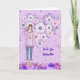 Tack för barnvakten. Det här är en lavendeldesign, med en illustration av en barnvakt, som står på blommor, med ett stort hjärta bakom blommigten och en lätt bakgrund med träd tryckt bakgrund. Tack vare KS Berry och Hungryjpeg för en del av inslag i designen.
