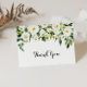Denna gröna höstfällda tackkort från bröllop är perfekt för ett orustigt bröllop. Konstruktionen har vattenfärgade vita peonier med elegant med gröntens löv. Anpassa kortets insida med namn och ett tackmeddelande. Du kan också lämna tackmeddelandeavsnittet tomt och lämna skrivan en personlig på varje kort. De här korten kan användas till en bröllop, en babydusch eller när du vill tacka.