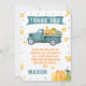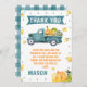 Söt blå orange vattenfärgspumpa lastbil-pojkar födelsedagskalas tack vare ditt kort. Det här pumpade temat tack du har för kortdesignen är ett sött sätt att tacka din lilla pojkes gäster för att han närvarade vid sin pumpade födelsedagsfest.