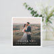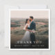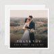 Tack vare det här bröllop-kortet finns ett fyrkantigt foto med en enkel elegant som läser "Tack". Anpassa det här kortet enkelt med ett av dina favoritfoton från bröllopsdagen, tillsammans med namn och datum. Ta bort ett meddelande på baksidan om du vill skriva ditt eget eller anpassa det enkelt. Ett vackert tackkort, perfekt för dina gäster.