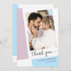 din uppskattning i stil med vårt hjärtliga tackkort från Bröllop - en perfekt som blandar personliga känslor och modern elegans. Det här anpassadet har ett romantiskt foto som fokalpunkt, framtaget av en mjuk geometrisk design i drömfyllda lilak- och baby blue toner. Elegantens svarta skript ger ett vackert tack och skapar det både hjärtligt och synligt. Den rena layouten och den milda paletten färg gör den perfekt för contemporary bröllop, medan personligen och namn gör den till en omhuldad keepé. Vare sig du tackar gästerna för deras kärlek, gåvor eller närvaro förvandlar det här kortet tacksamhet till ett oförglömligt ögonblick. Skapad för par som värdesätter design, känslor och varaktiga intryck - en snyggt och ett meningsfullt sätt att stänga firande på perfekten.
