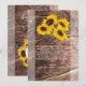Den här konstruktionen har solrosor på träets baksida. Solrosfrandalen ramar elegant vid bröllop-datumet. Gult, grönt och bruna färg-toner skapar ett naturligt jordklot i land. Det ogenomskinliga gräns belyser solroscentrum. De omvända visningarna är struktur av rustiskt trä tillsammans med blommigten solblommor. Elegant bröllop tackar dig för kortdesignen med det moderna inslag. Det finns också möjlighet att matcha bröllopsinbjudningar och andra artiklar i kontorsartiklar.