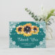 Tack för ditt kort, Rustic Solros Teal Bröllop Kort