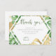 Tack för att du har ett kort med tropisk design, handflatan löv, guld blommigt och vit geometri.