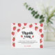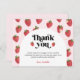 "Tack" Djurutrymmeskort för jordgubbsbabykläder, designade med jordgubbsbär och daisy mönster i skuggor av rosa och rött. Förutom de visuella jordgubbarna och retrotypografin är dessa vackra kort det idealiska valet att uttrycka sin tacksamhet i stil och matcha din söta babydusch. Anpassa korten genom att lägga till ditt namn och ett personligt meddelande med alternativet "Anpassa den här mallen". Originalteckningar av Ana Garza/Kardz Studio. Om du har några frågor, kontakta mig genom Zazzle- chattan.