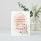Elegant dopkort.. Design med akvarell persika, rosa bakgrund och guld geometrisk oval ram och blomsterarrangemang på framsidan med guldkors och Dop i guld folie skrift. Lägg till fler detaljer på baksidan av vykortet. För att redigera denna mall klickar du på anpassa ytterligare.