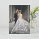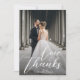 Ditt foto och Kärlek och tack på framsidan i chic med tackkort på baksidan. Välj alternativet HD-utskrift om du vill ha bättre fotokvalitet och Matte om du vill ha en tyngre papper. Fler utformningar är tillgängliga i vår samling.