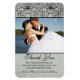 I elegant vintage bröllop tackar du för att foto 4 x 6 med flexibel magnet har en svart damm gräns överst med en blek bakgrund av silver grått. I mitten kan du enkelt lägga till ditt foto. Nedan skrivs Tack ovanför där du kan anpassa namnen för bruden och trimmen. I bröllop vill jag tacka er för att magnet skulle vara underbart för alla säsonger, särskilt för höst/höst och vinter.