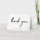 Det här klassiska kortet och eleganten säger "tack" i det moderna, svarta skriptet på en ren vit bakgrund.