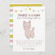 Tack för att du har ett lamatchdusch tack vare ett tecknad-stil-kort med en lama med rosa kinder med färgstarka ljus högst upp. Standardmeddelandet tackar gästerna för att de närvarar vid babyduschen och för presenten. Texten på toppen säger: "Tack Llama för att du firar med oss." Designad för både flicka och pojke dusch.