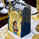 Indisk Bollywood med flick kalas tryckt presentpåsar, söt indisk flickdansfläkt för indisk tematisk födelsedagsfest, blå och guld-tema är till för presentpåsar