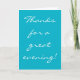 Ett enkelt tack för ett Underbart kvällskort i blått. Tomt meddelande inuti