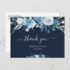 Tack för ett vackert skript, blå blommigt bröllop vykort
