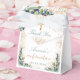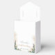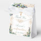 En vit bakgrund som dekoreras med eukalyptus grey och gyllene löv, faux guld glitter stoft och guldkor. Med texten: Bekräftelse och Tack. Anpassa och lägg till ett namn.