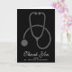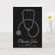 Ett tackkort för examen med ett grått stetoskop placerat på en svart bakgrund. Personalisera med ett namn på framsidan och ett meddelande på insidan. Stilfull elegant design.