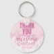 Tack för nyckelkedjan rosa glitter. Denna feminininkonstruktion är perfekten till ge tack vare en vårdgivare i fantastisk. Rosa och vit typografi på en bubbeleffektbakgrund.