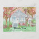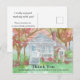 Ett anpassat postkort för fastighetsköpare med tacksamhetsmeddelande dekorerat med ett hus i Tudorstil med färgglada träd och blommor målade med pastellfärger i akvarell. Du kan anpassa framsidan och på baksidan finns ett personligt område för dina uppgifter som du kan anpassa efter dina behov.