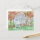 Ett anpassat postkort för tacksamhet för fastighetstransaktioner för husköpare, dekorerat med ett hus i Tudorstil med färggranna träd och blommor målade med pastellfärgade vattenfärger. Du kan anpassa framsidan och på baksidan finns ett personligt område för dina uppgifter som du kan anpassa efter dina behov.