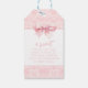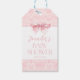 Förbättra charmen för din söta rosa flicka-dusch med det här förfinade tack-du-märkrn. De här märkrna har en elegant som lyfter fram rosa mönster som dekoreras med rosa buggremmar och ett varmt tack som visas längst bak.