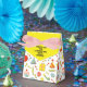 Tack för att du fyller år i party favors med presenter, muffinsar, godis, ballonger och noisemakers. Så här anpassar du redigeringstexten för att lägga till namn.