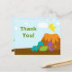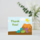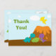 Pojkens födelsedagsfest tack för att du fick ett vykort med en söt färgstark dinosauridesign. Det finns en vulkan på högerna grund med tre dinosaurier framför den, med en gult en flygande. Tack för att ni också är skriven. På baksidan står en dino bredvid ett träd. Du kan enkelt anpassa ditt tackmeddelande på baksidan. Grafik efter Stockberry Studio på Mygrafico com
