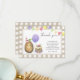 En liten sötpotatis. Vattenfärgen barns födelsedag party. Vattenfärgssöt potatiskawaii i födelsedagshatt, tårta med bär, lila ballong, flaggor festträdgård. Beige-brun burbakgrund.