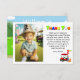 Det här charmiga golf-tema tack-kortet med ditt barns foto gör ett mycket sött tack-kort. Det har en ljusröd golfbil vid green, festliga ballonger (inklusive en stor siffra 2!), en födelsedagstårta och färgglada presenter som passar perfekt för att fira en liten mästares stora dag. Perfekt för en golfälskande familj och säkert att tillföra en lekfull touch till vilken födelsedagspresent som helst, på eller utanför golfbanan!