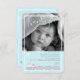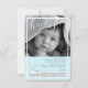 Baby blue och vitbakgrund och kor med pojke för tåg för grått- och vitchoochoo design för foto "för tack" för Christening eller för dop. Tillfoga enkelt ditt foto, unika meddelande och bokslut, barns namn och året. Original- design vid helgdaghjärtadesigner (reserverad rättigheter).