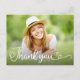 Whimsical handskriven "Tack"-text med hjärtan över ditt liggande foto. Matchar "Spara datum"-texten. Personifiera med dina detaljer, tack och vertikalt framsidesfoto. Använd mitt exempel eller skriv eget. Perfekt för bröllop och examina.