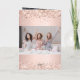 En övertoningsbakgrund i ro guld som dekoreras med konfetti. Inuti: 1:a av dina foton, lodrät storlekt. Tom sida för skriva för hand. (det här kortet är också tillgängligt med fördefinierad text och din namnteckning) Bakåt: Andra sidan dina foton, landskap storlekt.