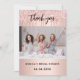 Ett modernt Tack-fotokort för Möhippa. En övertoningsbakgrund i ro guld dekorerad med faux glitter droppar, färgdroppstift. Anpassa och lägg till ditt foto och tackkort.