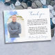 Skicka ett hjärtligt tack till vänner, familjemedlemmar och akvarier för den sympati de har visat under din svåra tid efter det att en älskad har förlorat tack vare denna sörjande tack för att du kortar personlig med anpassningsbarna och ett foto av din älskade i en båge mot ett moln av blå vattenfärg.