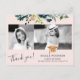 Blommigt elegant, modern glasbild studenten-fotokollage tack för att du vykort med en fullt redigerbar typografi av trendiget som innehåller ett botaniskt gräns med vattenfärg med löv och löv och en faux kopparhatt över chic guld (utbytbar rosa) bakgrund. +++++++++++++* Enkel att anpassa med student 2-foton, namn, startår, skolår och studenten och anpassningsbar på båda sidor!